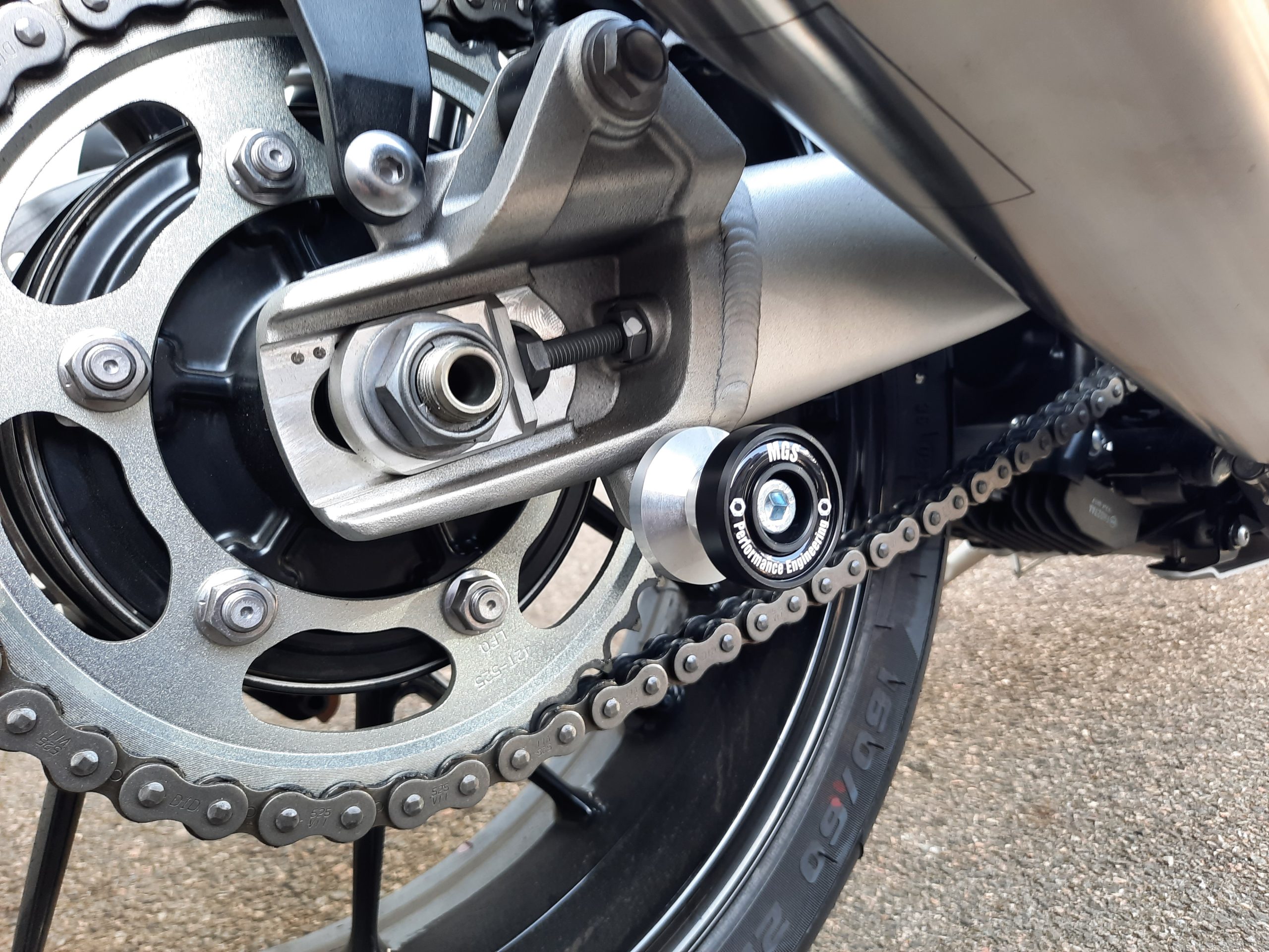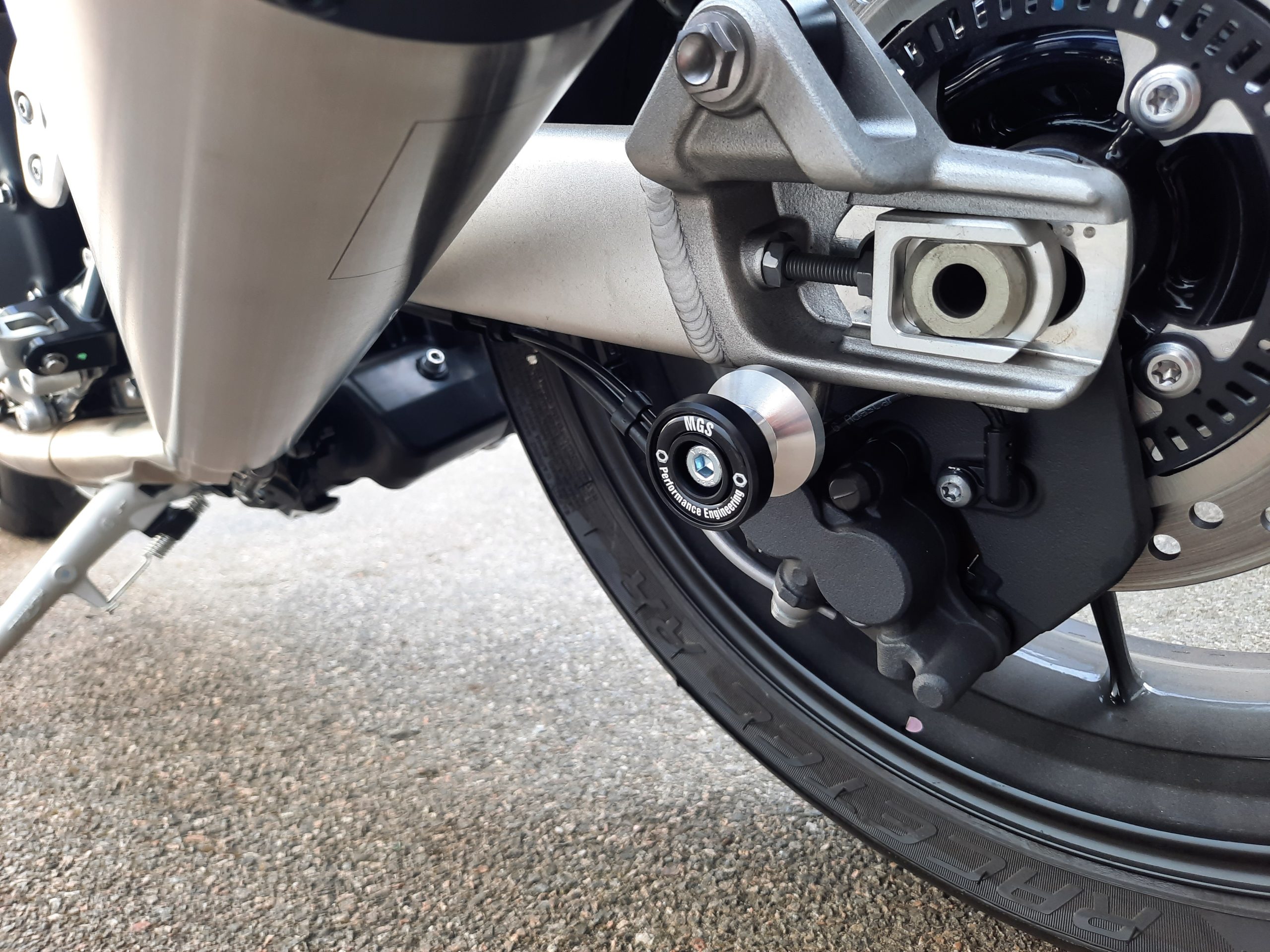 MGS Performance Paddock Stand Bobbins have been designed to not only raise the rear of the bike for any service work but at the same time to protect the rear swing arm from any damage if dropped.